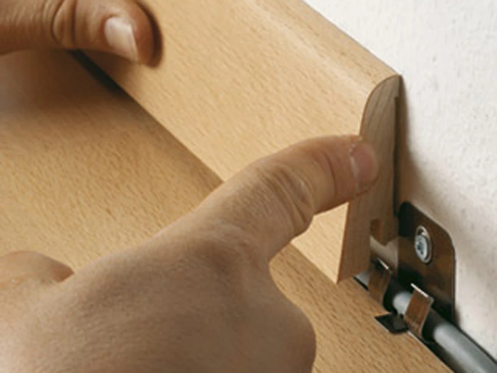 Particulièrement facile à monter : Les plinthes sont simplement clipsées sur des clips de plinthes et peuvent être retirées facilement à tout moment. De plus, les clips conviennent parfaitement pour un passage de câbles dissimulé.