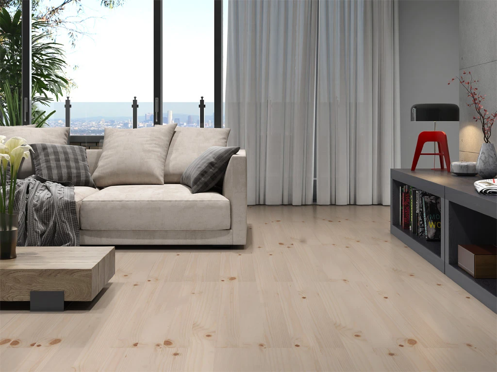 Les lames en bois massif sont le nec plus ultra en matière de revêtement de sol. La belle veinure naturelle du pin présente souvent des remplissages de nœuds et de petites irrégularités qui s’accordent bien avec les styles d’habitat naturels. Le bois de pin est très apprécié pour sa durabilité et son excellent bilan écologique, car il se renouvelle très rapidement. Le bois est relativement tendre et élastique.