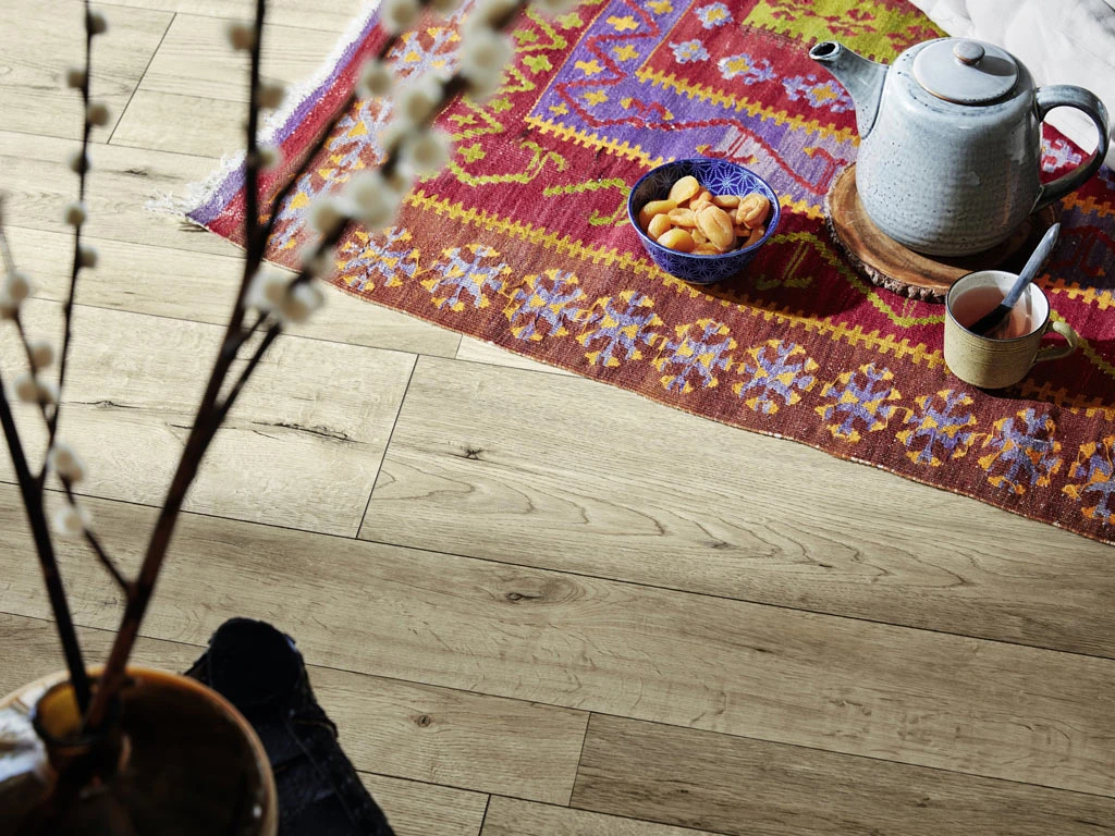 Landhausdielen bringen mit ihrem natürlich wirkenden 1-Stab-Design südliches Flair in Dein Zuhause und schaffen eine Atmosphäre voller Ruhe und Gemütlichkeit. Die umlaufende 4-V-Fuge hebt jede einzelne Diele hervor und gibt der Fläche so eine schöne Struktur. Dieser Boden erhält durch die strukturierte Oberfläche einen täuschend echten Holz-Look, der vom Original kaum zu unterscheiden ist.