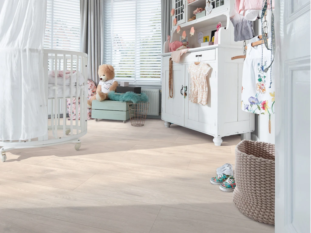 Ce sol avec une couche d’usure de 0,2 mm est parfait pour des pièces comme les chambres ou les bureaux.
