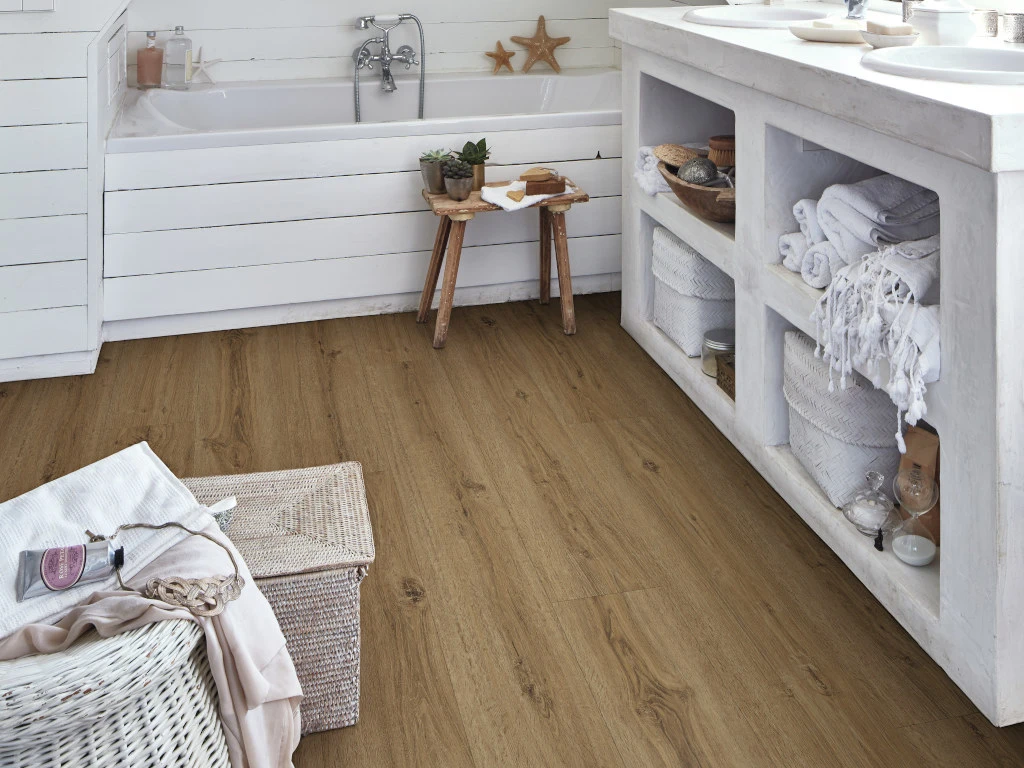 Il offre une résistance optimale à l’eau et à l’humidité, ce qui en fait un choix idéal pour les pièces humides telles que la cuisine ou la salle de bains. Il convient à une installation sur un système de chauffage par le sol à eau chaude. L’isolation phonique intégrée réduit les bruits de pas gênants, pour votre confort et celui de vos voisins.