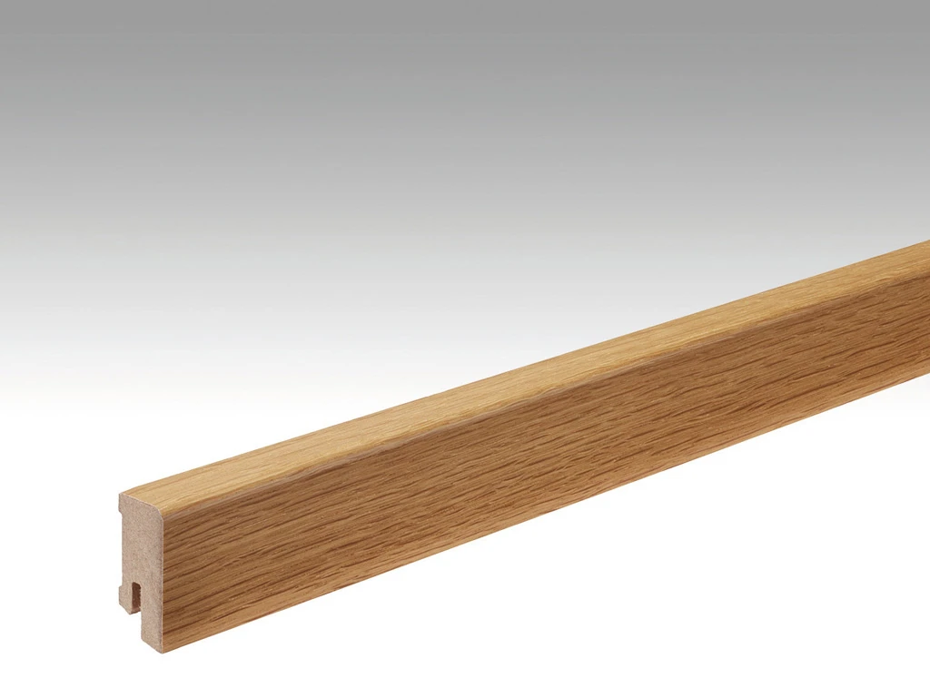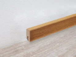 Plinthes en bois véritable avec âme MDF robuste pour parquets et sols placage bois.