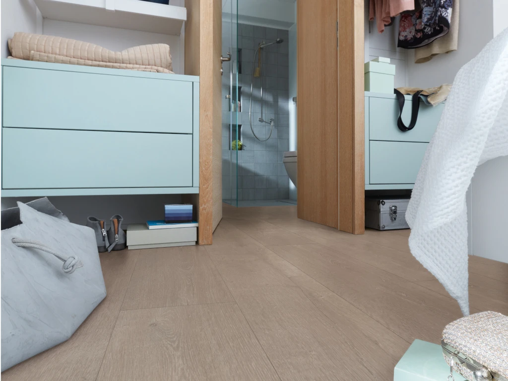 Cet article n’est pas adapté aux pièces humides et ne doit donc pas être posé dans les cuisines et les salles de bains en raison de l’absence de protection contre l’humidité. Le sol design MEISTER est adapté à une installation sur un plancher chauffant à eau chaude. L’isolation phonique obligatoire, déjà intégrée, réduit le bruit gênant dans la pièce et les pièces adjacentes.