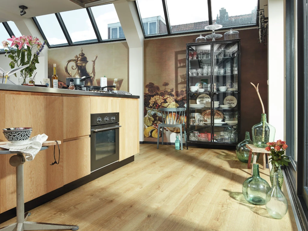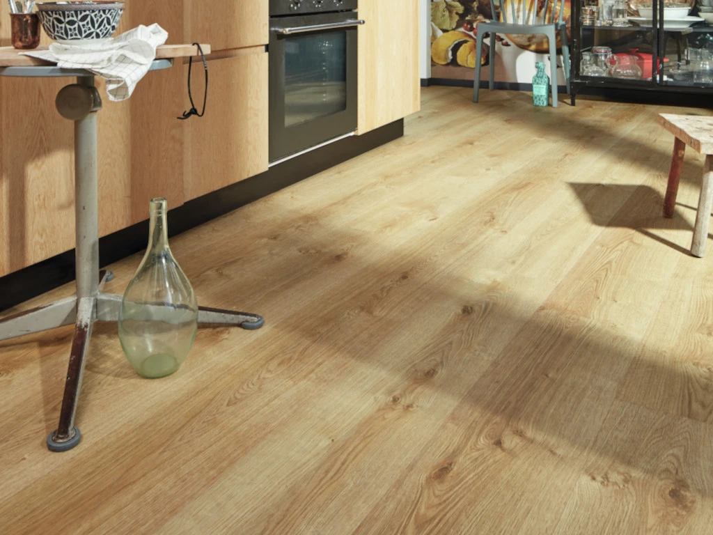 L’épaisseur de ce sol est de 8 mm. L’assemblage par clic garantit une pose flottante rapide et facile à manipuler.
