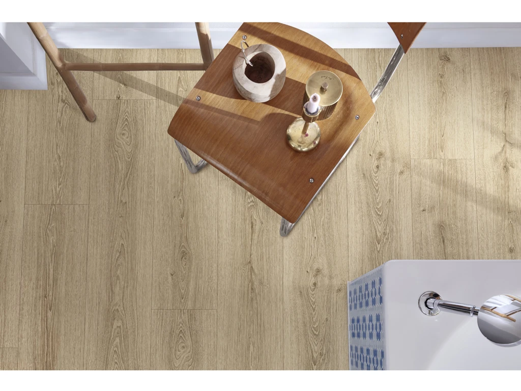 L’épaisseur des lames de ce sol est de 5 mm. Une pose flottante sans colle ? L’astucieux assemblage par clic MULTICLIC rend cela possible.