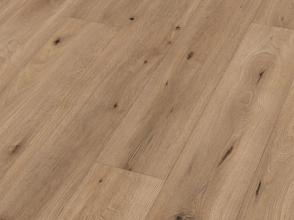 Cette lame de stratifié au format extra large de 220 mm convainc par son aspect fort qui met ainsi encore mieux en valeur le beau décor.
