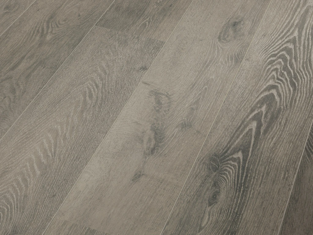 Le décor, avec son grain de bois de chêne prononcé procure une sensation de confort et de naturel. Les lames larges ajoutent une élégance, un aspect rustique et plein de caractère. Un indispensable pour les amateurs de bois ! Le chanfrein tout autour des lames met particulièrement en valeur leur caractère. La structure de la surface, avec une synchronisation des pores extrêmement réaliste, fait en sorte que le sol ressemble à un parquet en bois véritable – aussi au point de vue du ressenti. Cela est possible car lors de l’impression, les nœuds, les pores ou les fissures sont adaptés individuellement à l’image du décor sous-jacent. Des niveaux de brillance et de profondeur différents contribuent à apporter une diversité à la structure et complètent parfaitement l’image.