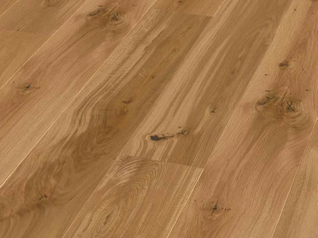 Ce parquet en chêne est d’une beauté intemporelle – le véritable chêne parle de lui-même. Mais le chêne a également des atouts techniques : en raison de sa densité élevée, cette essence de bois est particulièrement conductrice de chaleur et permet d’avoir toujours les pieds au chaud.