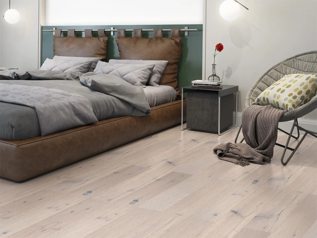 Le bois de chêne utilisé pour ces lames se caractérise par des cernes de croissance et des nœuds plus ou moins importants, qui confèrent à votre intérieur un aspect unique et individuel. En raison de sa dureté et de la beauté de son grain, le parquet en chêne est le sol préféré des Européens.