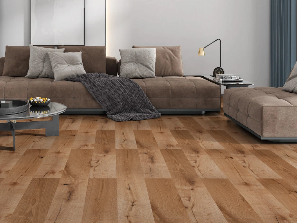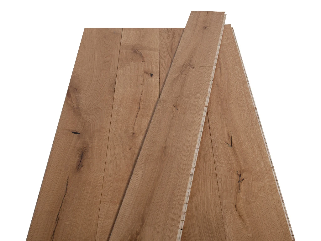La couche d’usure en bois noble de chêne de 3 mm d’épaisseur, facile à entretenir, garantit une surface robuste et durable.