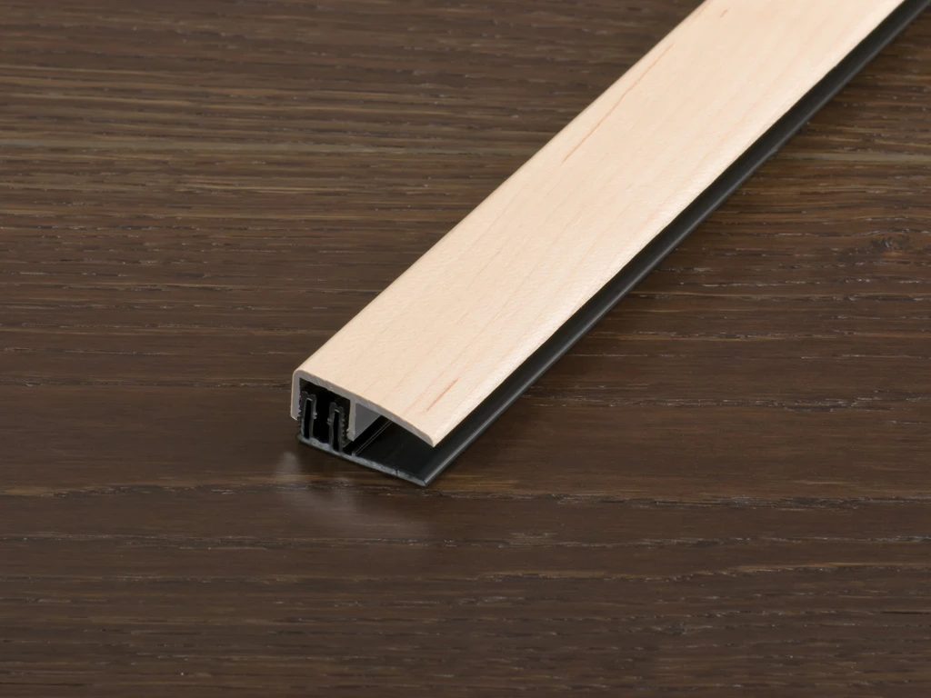 - Profilé de recouvrement également disponible avec des surfaces anodisées, en liège, en placage bois véritable ou les surfaces très résistantes CPL (Continuous Pressure Laminates)