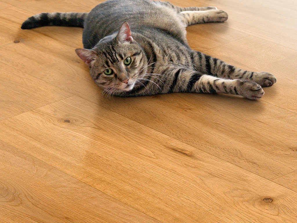 Dieser Vinylboden ist 4 mm stark. Im Nu sind diese Dielen schwimmend verlegt – dank praktischer Klickverbindung easyloc.