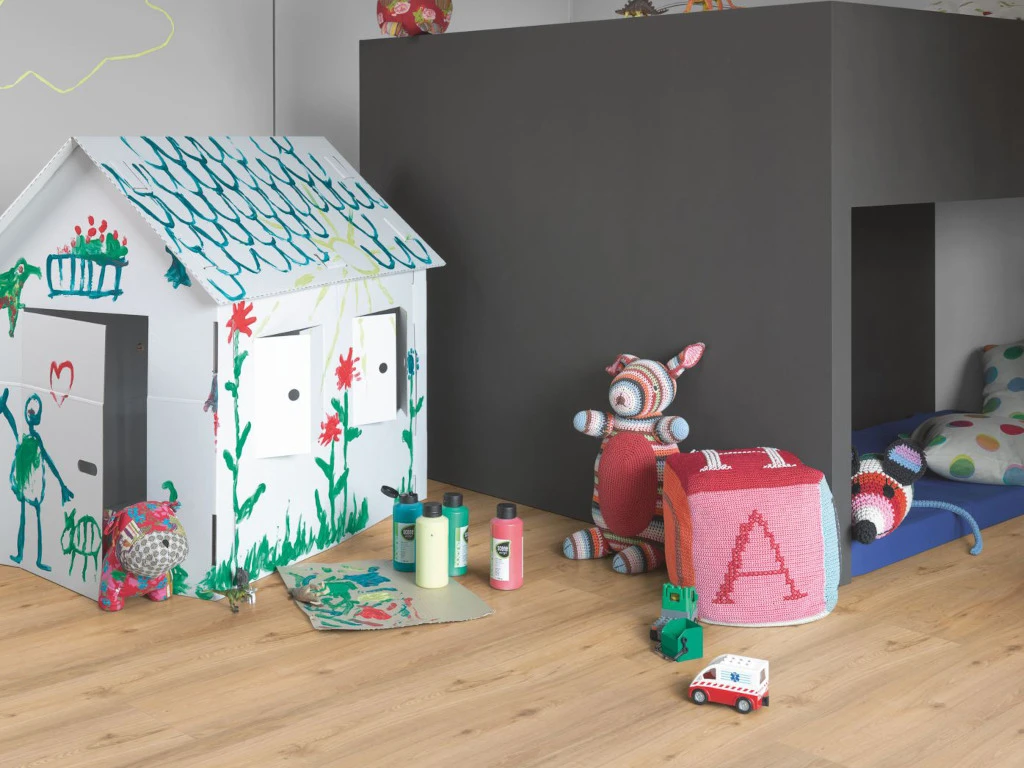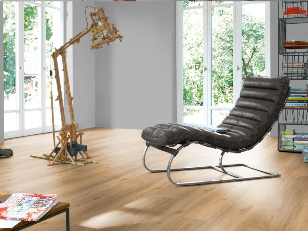 L’épaisseur de ce sol est de 9,6 mm. Grâce à l’assemblage par clic Safe-Lock PRO, le sol peut être posé de manière flottante en toute simplicité.