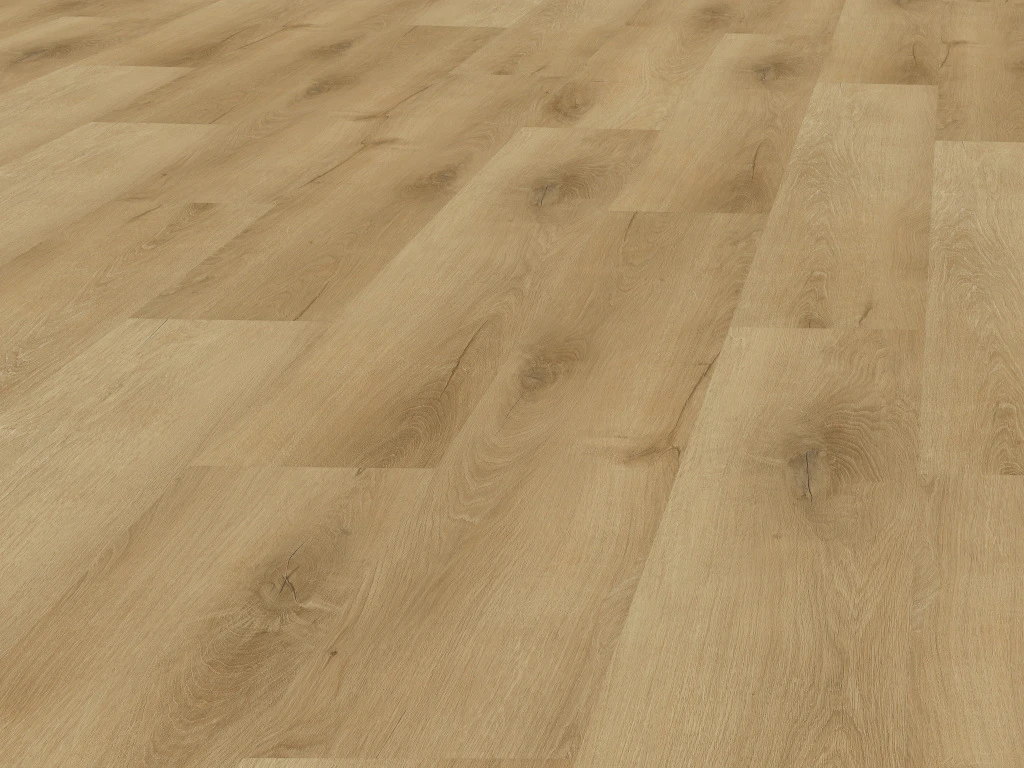Avec sa couche d’usure de 0,3 mm, le sol est bien armé pour résister aux sollicitations du salon, de la chambre d’enfant ou du couloir. Il correspond à la classe d’usage 22 et convient donc aux espaces moyennement occupés dans la zone privée tels que les cuisines, les chambres, les salles de bains ou les salons. Avec la classe d’usage commerciale (CU) 31, il convient également à un usage peu intense, comme dans les petits bureaux ou les salles de conférence.