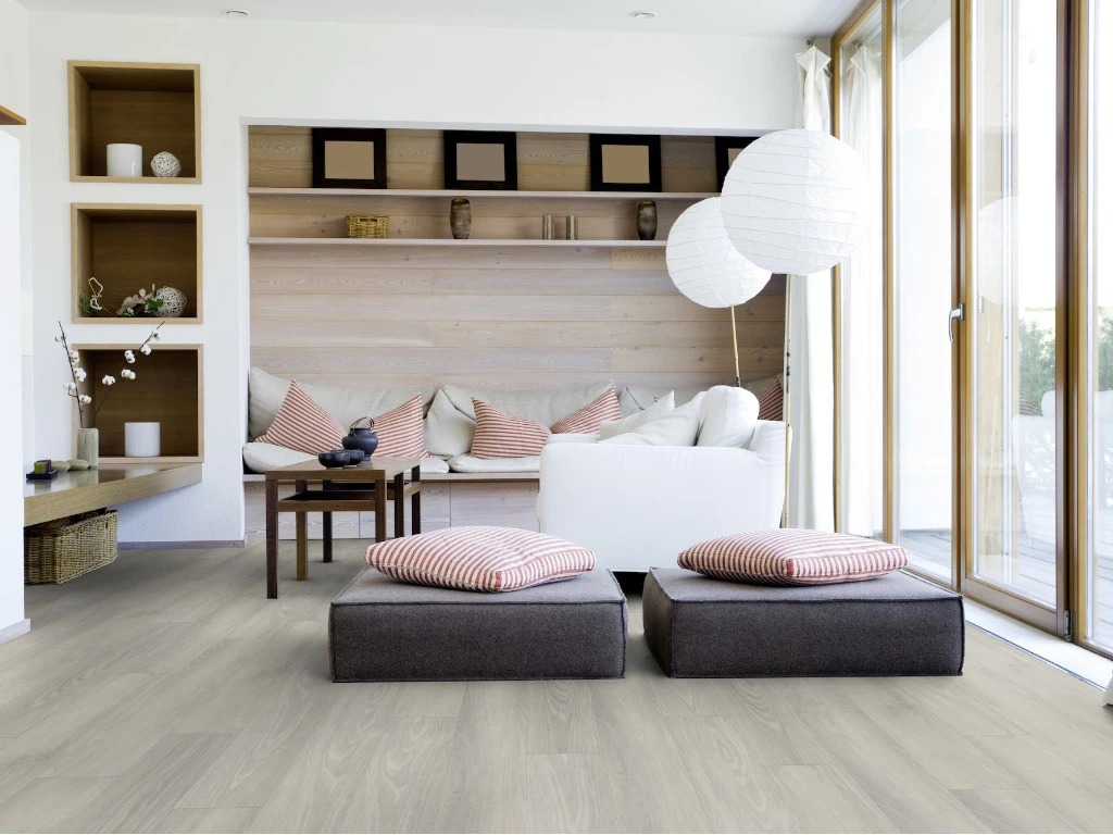Le dĂ©cor avec son veinage de chĂȘne typique caractĂ©rise parfaitement le style du moderne rustique. Le look des lames larges apporte une ambiance mĂ©diterranĂ©enne Ă votre maison et crĂ©e une atmosphĂšre de calme et de convivialitĂ©. Le chanfrein sur deux cĂŽtĂ©s met particuliĂšrement en valeur le caractĂšre des lames. Le grain naturel s’accorde parfaitement avec tous les types d’amĂ©nagements. GrĂące aux technologies de gaufrage les plus modernes, la surface structurĂ©e reproduit jusqu’au moindre dĂ©tail la texture du bois.