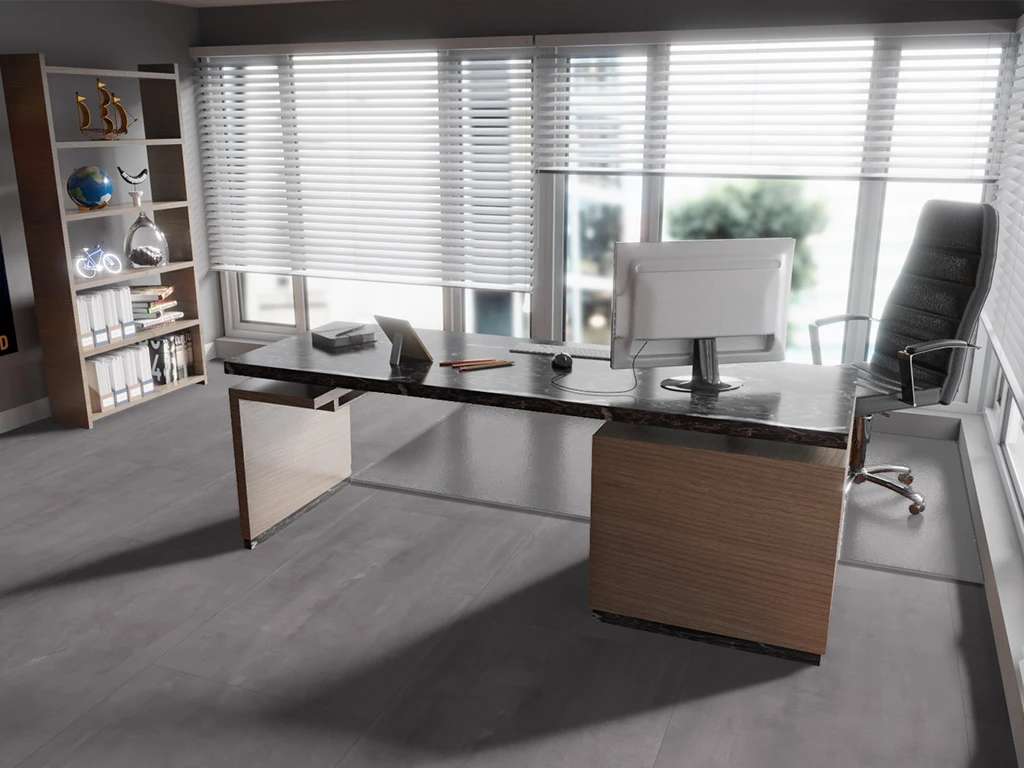 - La structure de surface super mate, associée au microjoint de couleur assortie au décor et à l’aspect esthétique du béton, crée une atmosphère moderne et exclusive dans la pièce.