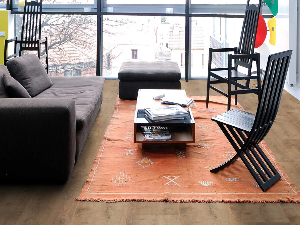 Ce stratifié de classe d’usage 23 peut également être posé dans le cadre d’une utilisation intensive dans le domaine privé, par exemple dans les cuisines, les couloirs d’escalier ou les entrées. Sa classe d’usage commerciale (CU) 32 peut briller dans les bureaux, les boutiques ou les salles d’attente à usage continu. En outre, avec la classe d’usage (CU) 42 dans l’industrie, il est parfaitement adapté à une utilisation constante avec des véhicules, comme c’est le cas dans les entrepôts.