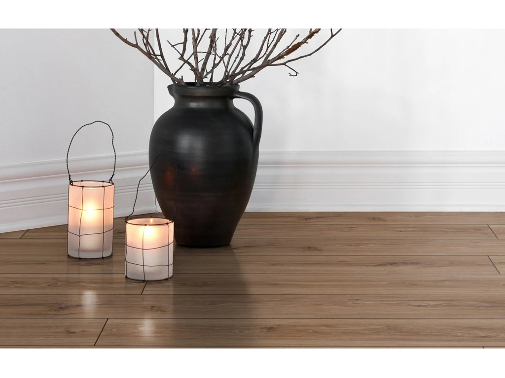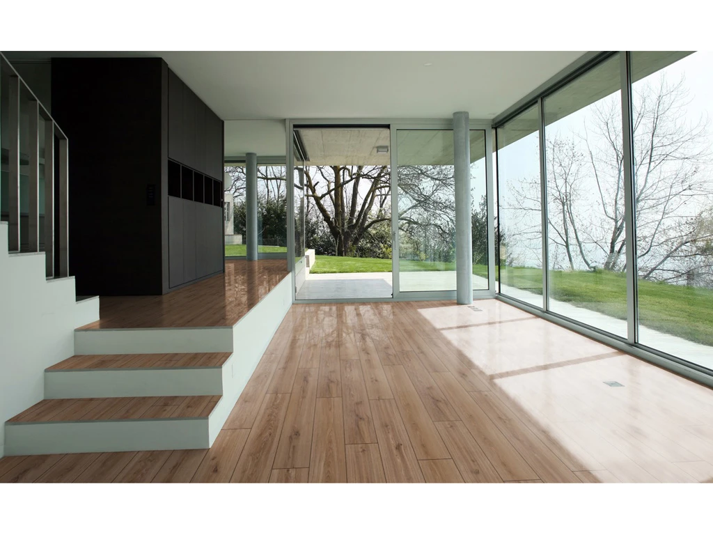 Les veinures typiques du chêne du décor dégagent une classe intemporelle et une chaleur confortable.