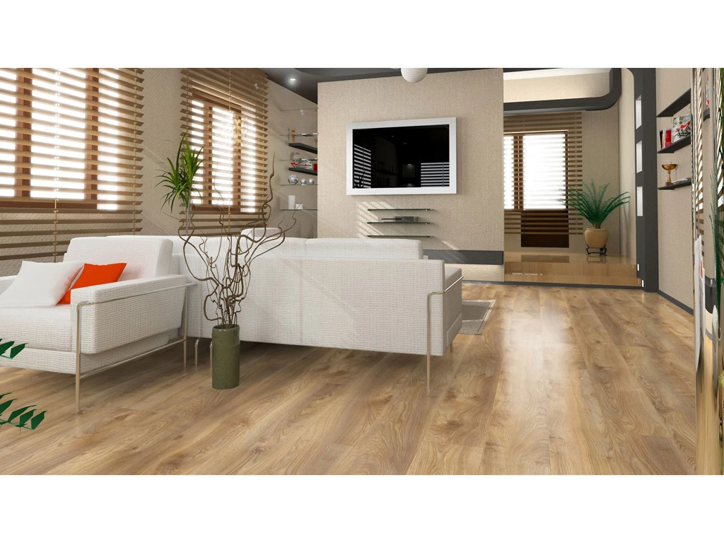 L’épaisseur des lames est de 12 mm, ce qui correspond à une utilisation intensive dans le domaine commercial. Grâce au système d’assemblage par clic 5G, le sol peut être facilement posé de manière flottante.