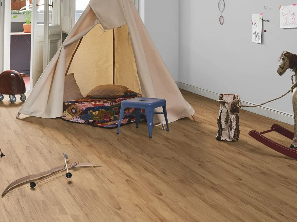 En raison de l’absence de protection contre l’humidité, la pose dans des pièces humides telles que la cuisine ou la salle de bains n’est pas recommandée. Le stratifié convient à la pose sur un chauffage par le sol à eau chaude.