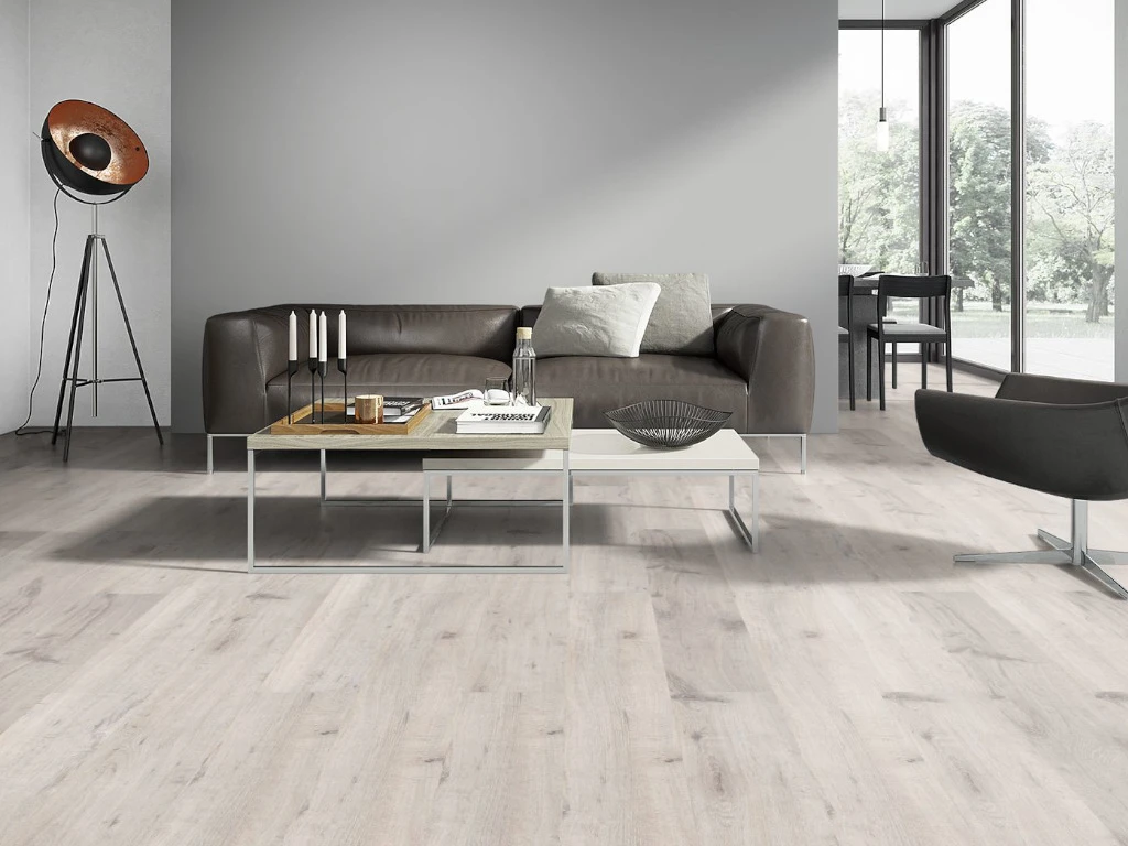 Les veinures typiques du chêne du décor dégagent une classe intemporelle et une chaleur confortable.