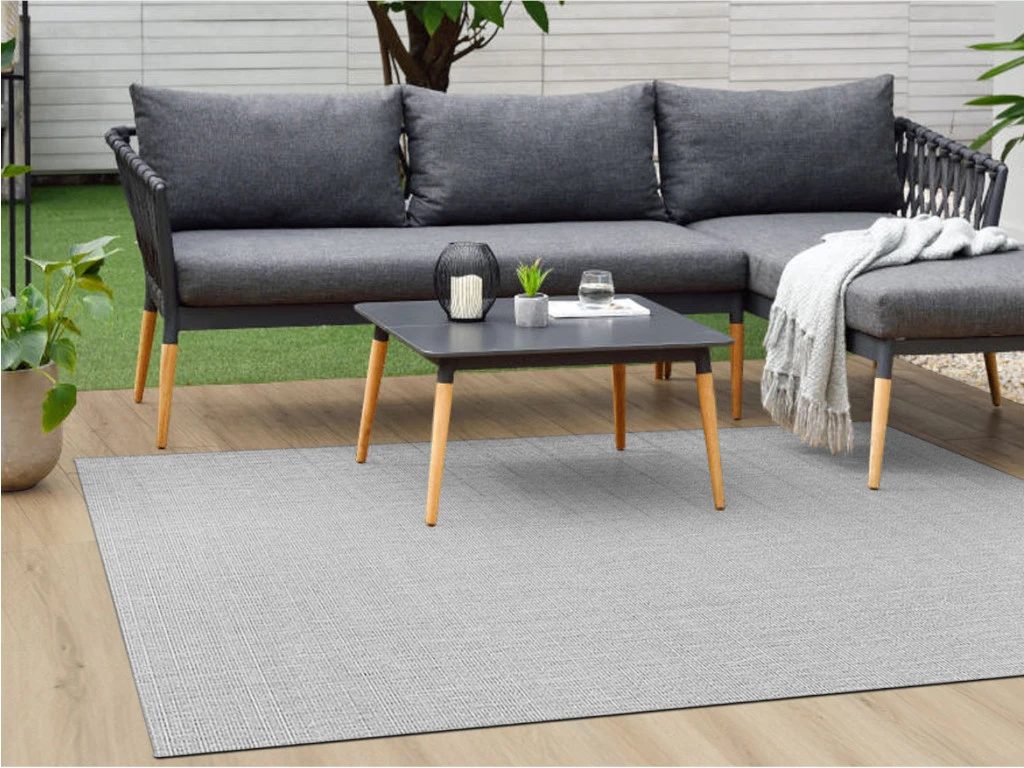 Votre terrasse sera encore plus confortable avec ce tapis d’extérieur de WOODTEX en gris clair-anthracite. Grâce à des matériaux de pointe, ce tapis est très robuste, résistant et imperméable aux intempéries, ce qui le rend 100 % adapté à l’extérieur.